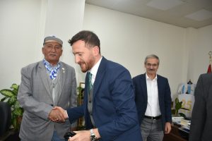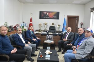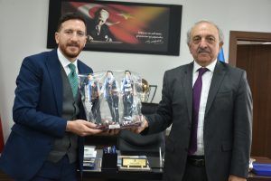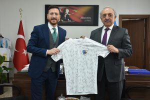 Oldukça samimi bir ortamda geçen ziyarette efsane amigo Baraka Yusuf, Erzurumspor Başkanı Ahmet Dal’a efsane Erzurumspor’un anahtarlığını hediye etti.