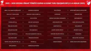Ziraat Türkiye Kupası 4. Eleme Turu Kura Çekimi, Ziraat Türkiye Kupası 3. Eleme Turu’nu geçen 28 takımın yanı sıra Trendyol Süper Lig’den 6 ve Trendyol 1. Lig’den 4 olmak üzere toplam 38 takımın katılımıyla gerçekleştirildi. 19 takımın seri başı olduğu eşleşmede küçük numarayı çeken takımlar, müsabakalara ev sahipliği yapacak. Ziraat Türkiye Kupası 4. Eleme Turu müsabakaları tek maç eleme usulüne göre 2, 3 ve 4 Aralık’ta oynanacak. Müsabakalarını kazanan 19 takım, Ziraat Türkiye Kupası Grup Aşaması’na yükselecek.